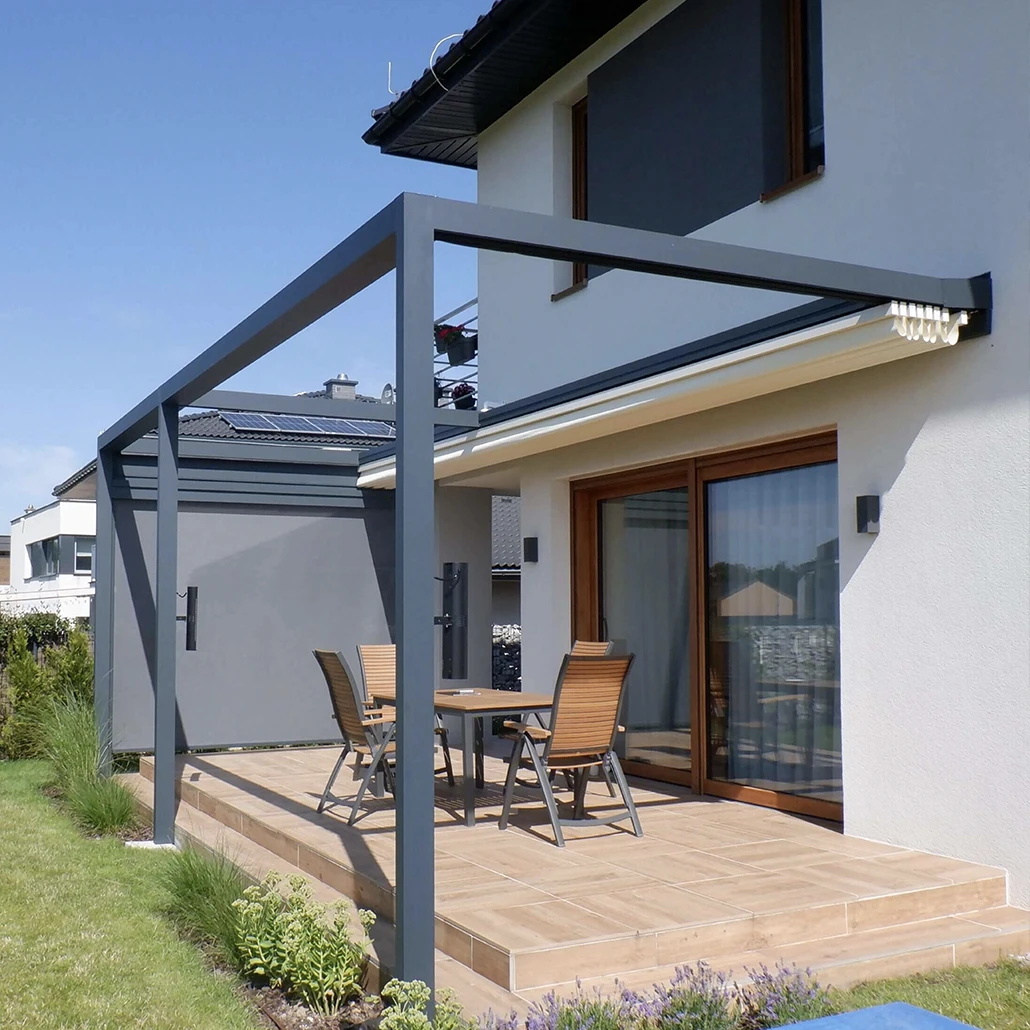 Ce type de pergola est particulièrement adapté aux projets de rénovation ou aux terrasses existantes. Elle permet d’améliorer rapidement le confort extérieur tout en conservant une structure discrète et élégante.